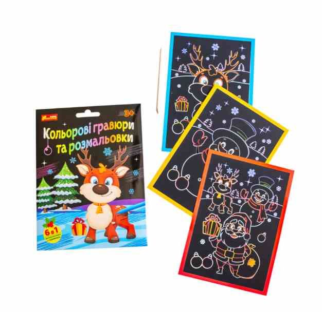 Новорічні кольорові гравюри та розмальовки – це оригінальний творчий набір для дітей від 3 років, який поєднує гру, навчання та святкову магію.