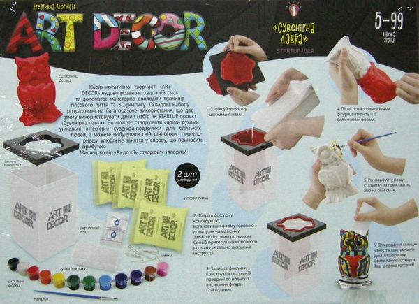 Набір креативної творчості «ART DECOR» чудово розвиває художній смак та допомагає майстерно опанувати техніку гіпсового лиття та 3D-розпису.