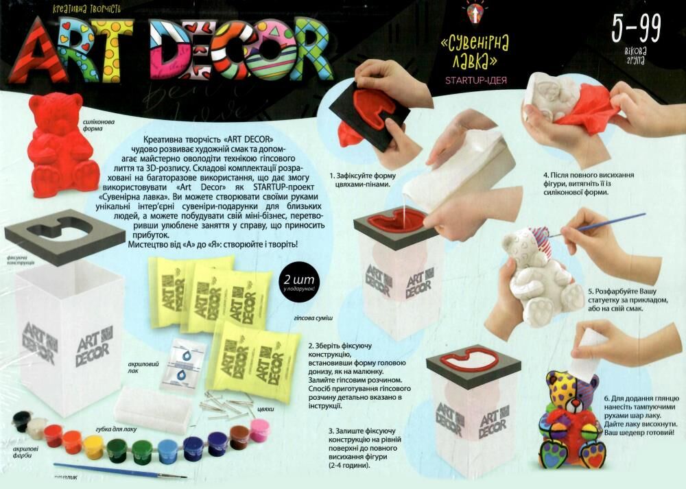 Вибирай круті подарунки на сайті "Чудо-Острів". Набір для творчості Danko Toys ART DECOR №1 Вear Love (ARTD-01-01U) за класною ціною 219 грн просто зараз. Авторизуйся та накопичуй бонуси з програмою лояльності "Вау Бонус". В інтернет-магазині іграшок Чудо Острів доступні різні способи доставки: є можливість оформити доставку на пункт видачі транспортної компанії або адресну доставку, а також вибрати самовивіз в одному з кількох десятків магазинів Чудо Острів по Україні. Наші магазини працюють у багатьох містах, як: Львів, Луцьк, Чернігів, Кропивницький, Суми, Полтава та інші. Крім цього замовлення Ви маєте можливість як сплатити швидко відразу на сайті, так і при отриманні в пункт видачі компанії-перевізника або в магазині самовивезення. Приємних покупок! У набір входить: порошковий гіпс – 3 шт; силіконова форма – 1 шт; акрилові фарби з 12 кольорів – 1 шт; акриловий лак – 1 шт; губка для лаку – 1 шт; пензлик - 1 шт; фіксуюча конструкція – 1 шт; набір цвяхів – 1 шт; інструкція – 1 шт.