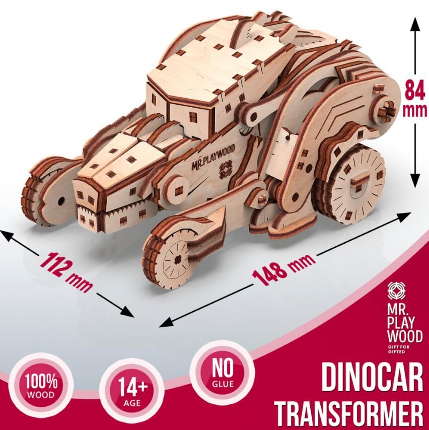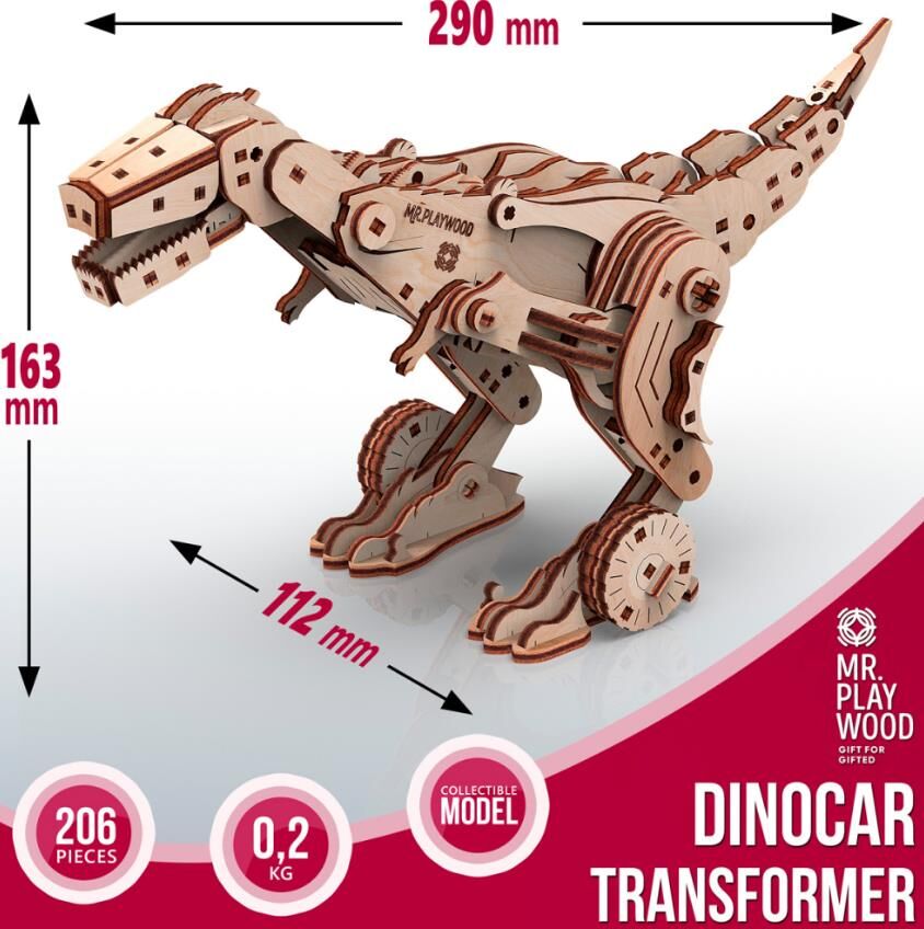 трансформер Дінокар 206 деталей механ деревяний