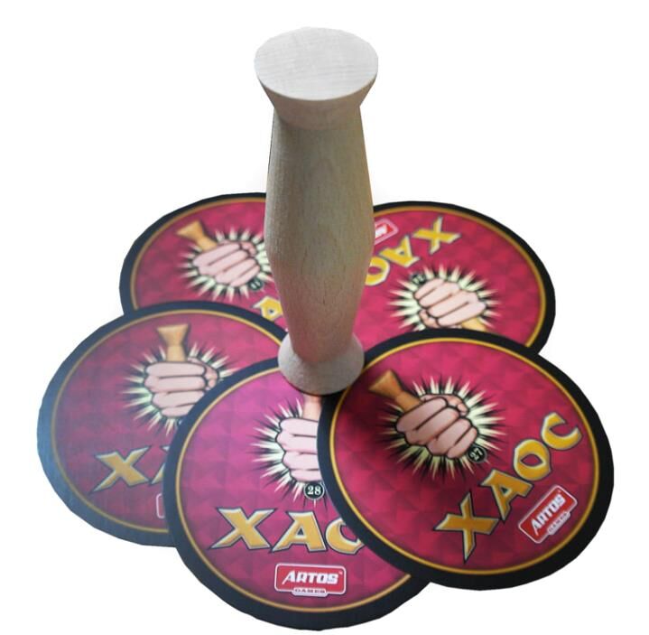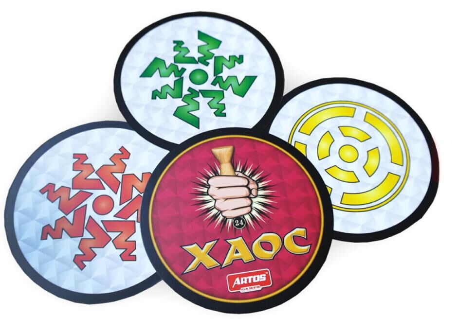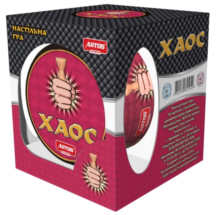 Гра «Хаос» не так має таку назву. Незважаючи на простоту правил та комплектації, настільна розвага посіє справжній хаос і розпалить суперницький дух серед гравців. Головне зосередитися, включити уважність і реакцію, щоб знайти дещицю розсудливості в безвихідній плутанини і здобути перемогу. Крім 70 захоплюючих карток у грі братиме участь дерев'яний тотем. Він стане центром ігрової дії, адже часто розпалюватиме конфлікти та цілі баталії.