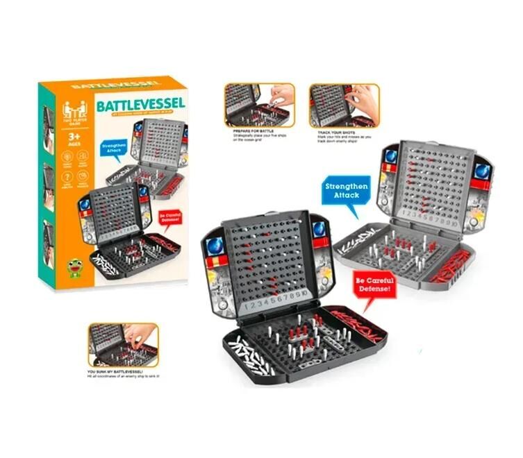 • Комплектація: 2 ігрові поля-кейси, кораблі, фішки для пострілів;