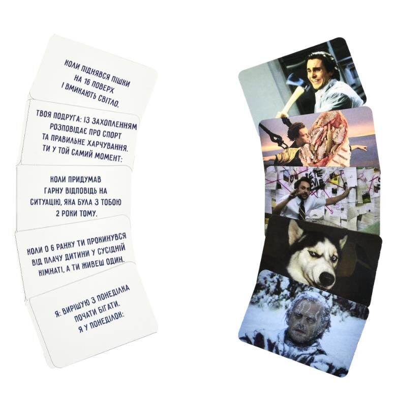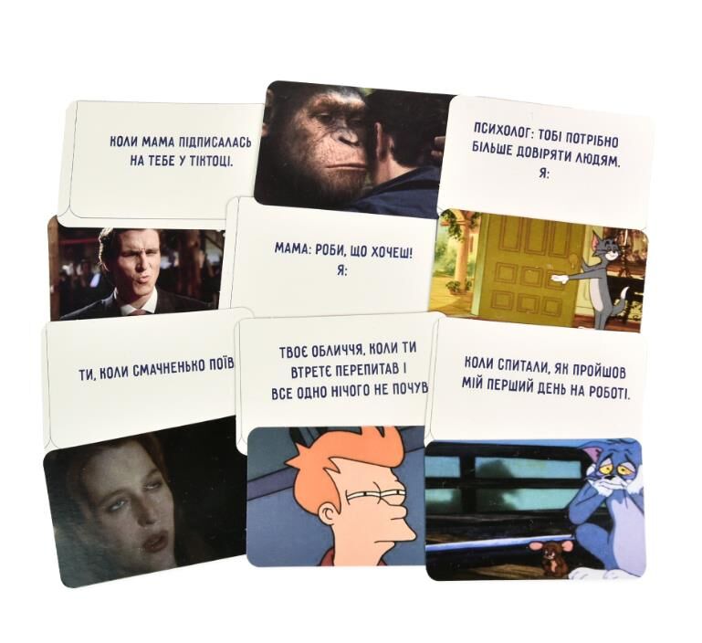 Роздайте картки, оберіть суддю, і нехай креативність та гумор ведуть вас до перемоги! Виграє той, хто збере найбільше текстових карток.
