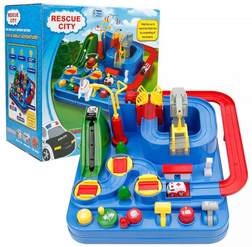 Ігровий набір являє собою інтерактивний трек з перешкодами, по якому потрібно провести три машинки: швидку допомогу, поліцейську та пожежну. Дитина керує різними елементами треку — обертанням літака, зміною напрямку руху, катанням на гірці, відкриванням та закриванням розвідного моста, підйомом машинок вгору та вниз. Під час гри активуються звукові та світлові ефекти, що робить процес цікавішим та реалістичнішим.
