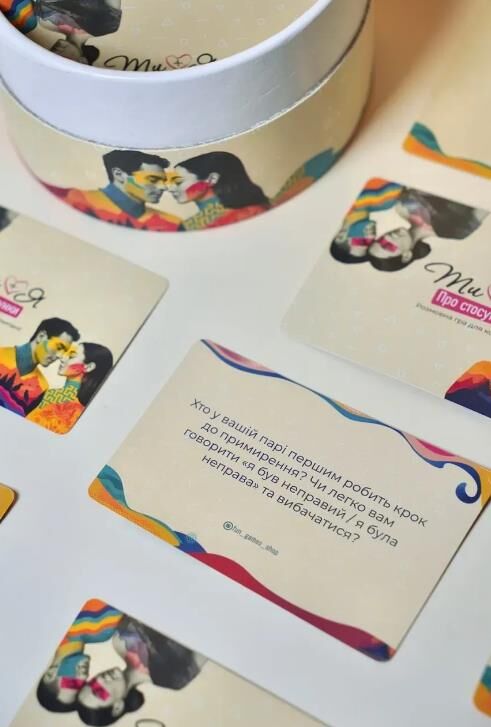 Іноді вечір у колі друзів починається зі звичайного чаю, звичних облич та чергових посмішок. А потім раптом виникає пауза — та сама, в якій хочеться запитати щось справжнє. Настільна гра Ти + Я: Про стосунки (укр.) м'яко й дбайливо відкриває двері в такі розмови. Це гра, створена разом із практикуючим психологом, але відчувається вона не як сеанс терапії, а як тепле одкровення, яке відбувається само собою. Тут немає правильних та неправильних відповідей — є живі люди, їхній досвід, сумніви, надії та почуття. Картка за карткою ви заглядаєте в чужі історії та несподівано глибше розумієте власні. Ревнощі, близькість, романтика, побут, плани, страхи та мрії — все це перестає бути абстрактним та стає напрочуд справжнім.