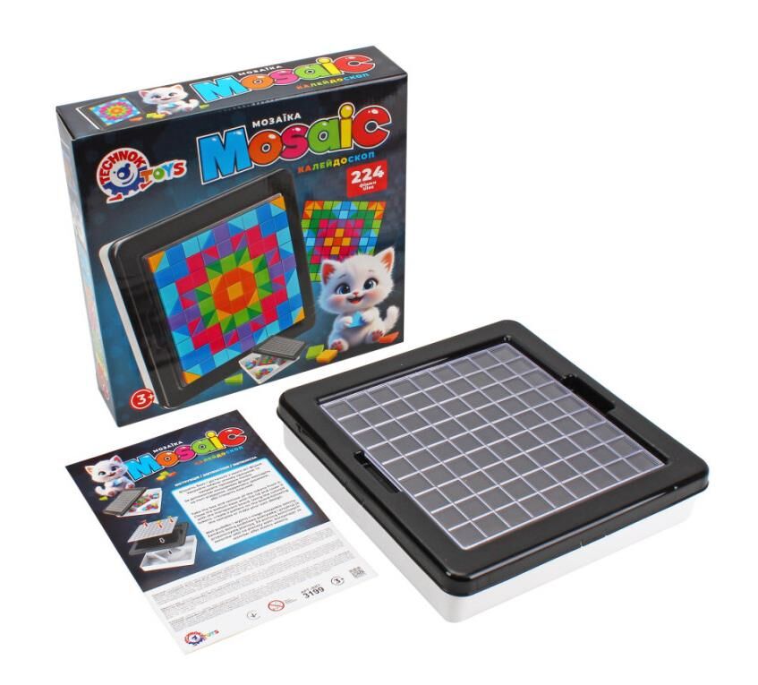 "Мозаїка ТехноК" (арт. 3199) - це запрошення у світ високого дизайну для найменших. Головна особливість набору - унікальна форма фішок. Замість традиційних круглих елементів, дитина працює з квадратами та трикутниками. Це дозволяє створювати малюнки з чіткими лініями, складними орнаментами та ефектом «піксельної графіки», що стимулює нестандартне художнє бачення та просторову уяву.