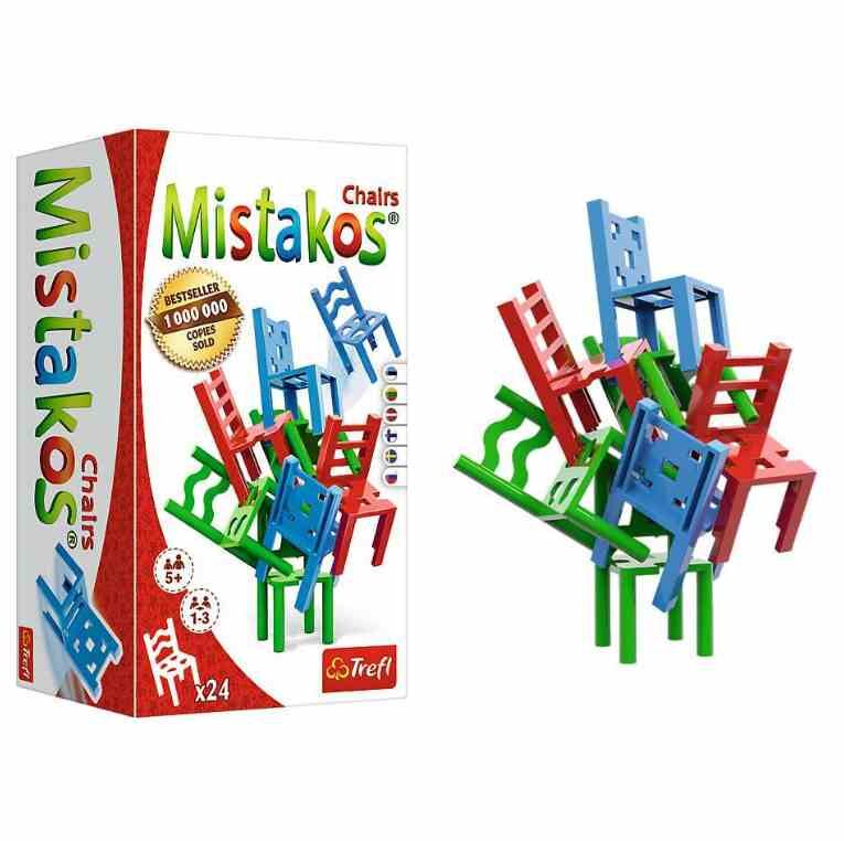 Нова версія культової аркадної гри Mistakos, цього разу зі сходами у головній ролі! Наберіть мінімально можливу кількість штрафних очок або позбудьтеся сходів даного кольору якомога швидше, одночасно створюючи загальну вражаючу структуру. Відмінне задоволення гарантоване - тепер також і для більшої групи! Пам’ятайте, що ви можете поєднувати ігри із серії Mistakos. Грайте одночасно зі стільцями та сходами та створюйте ще більш ефектні конструкції!