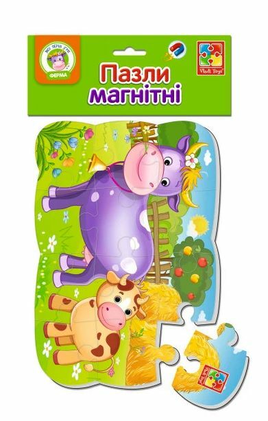 Мууууу. Корова і теля запрошують разом зібрати яскравий пазл, який прикрасить холодильник або знайде своє місце на будь-якій магнітній поверхні.