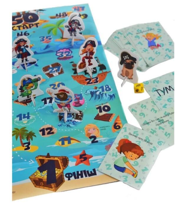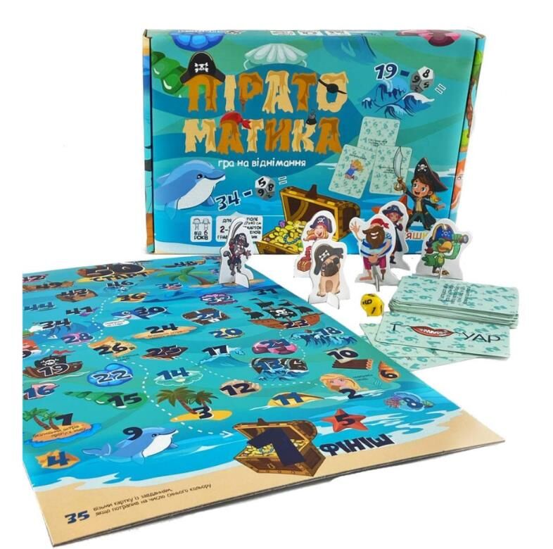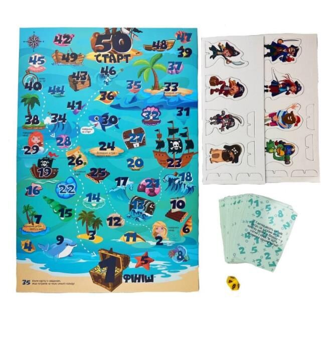 Допоможи піратам дістатися Острова скарбів. Пересувайся по полю віднімаючи цифри, що випадають на гральному кубику, та дістанься фінішу першим.