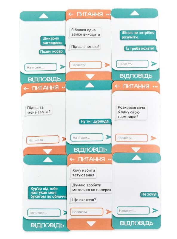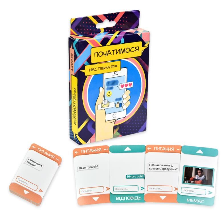 «Початимося?» Strateg (30334) у міні-версії. Цю комедійно-романтичну гру для закоханих, друзів або закоханих друзів можна брати з собою будь-куди, щоб жодної хвилини не нудьгувати. В «Початимося?» є 55 двосторонніх карток, на яких написані фрази привітання, жарти, компліменти і т.д., які можна іноді зустріти в переписці будь-кого. Завдання гравців побудувати якомога смішніший діалог, викладаючи по черзі картки з рук або витягуючи їх навмання з ігрової колоди. Таким чином, можна з’ясувати які жарти вашій коханій людині не до вподоби, а з яких вона не проти пореготати разом з вами.