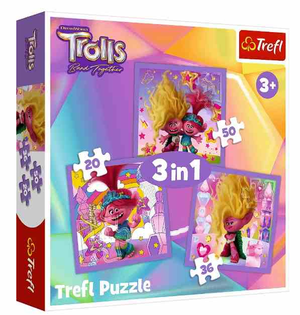 Пазли 3 в 1 Зустрічайте веселих тролів Trefl 34870