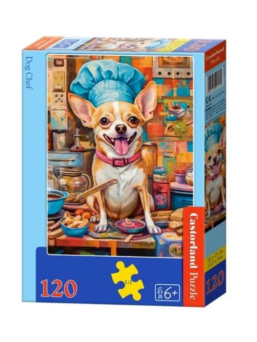 Пазли - Собака-кухар Кількість елементів: 120шт. Пазл: 32x23 см. У коробці: 17.5x13x3.7 см. Вік: 6+