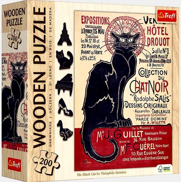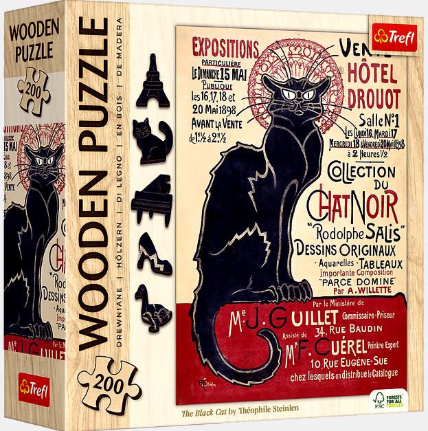 Дерев'яний пазл "Чорний кіт - Теофіль Стейнлен" з 200 деталей,що зображують всесвітньо відому картину «Чорний кіт» – Теофіль Олександр Стейнлен.