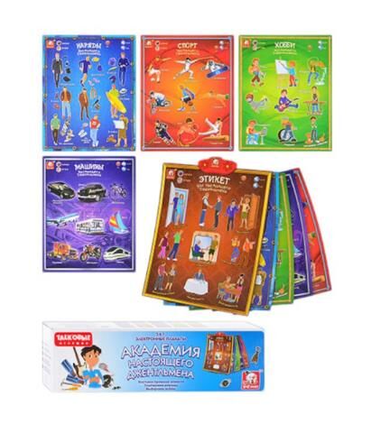 Навчальний електронний плакат Академія справжнього джентльмена – це інтерактивний набір для розвитку дітей, який допоможе вивчати важливі теми у цікавій формі. Завдяки звуковому супроводу та яскравим ілюстраціям дитина легко засвоїть правила етикету, познайомиться з видами спорту, транспортом, гардеробом та хобі. 5 навчальних тем: етикет, спорт, хобі, транспорт, гардероб Інтерактивний формат із голосовим супроводом (російською мовою) Барвисті ілюстрації для легкого засвоєння інформації