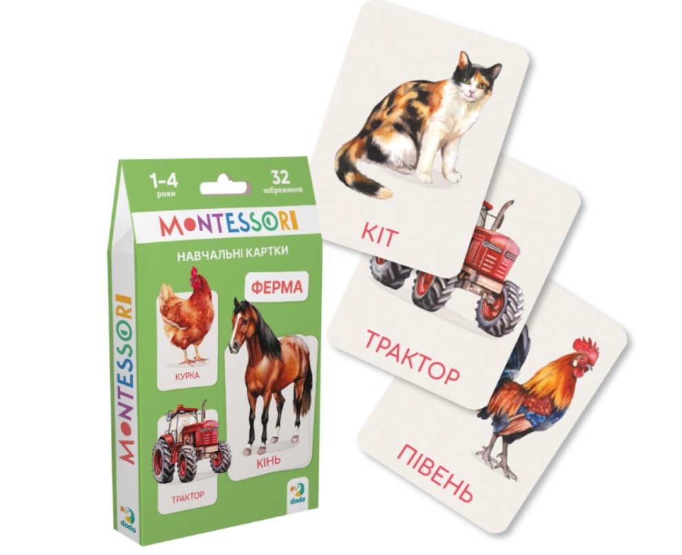 Знайомте дитину зі світом фермерських тварин за допомогою набору навчальних карток Dodo «Ферма» за методикою Монтессорі — яскравий, пізнавальний і корисний інструмент для раннього розвитку.