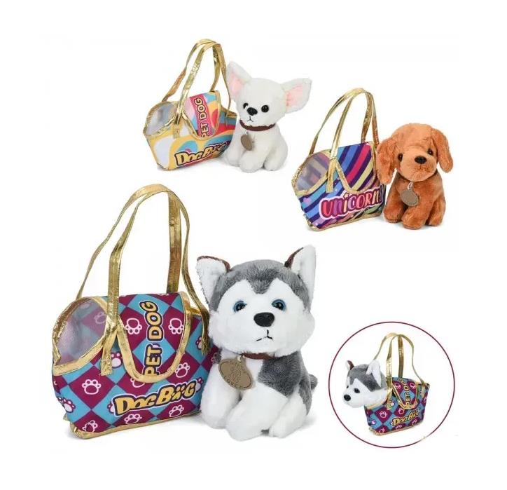 Собака плюшева в сумці 18 см 3 види 7622-115A-16A-17A