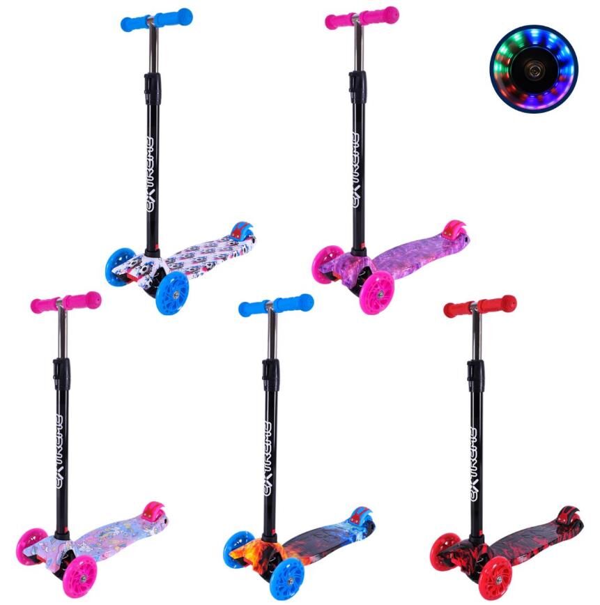• Самокат представлений у 6-х яскравих різнокольорових принтах, тому є можливість обрати той, який більше до вподоби.
