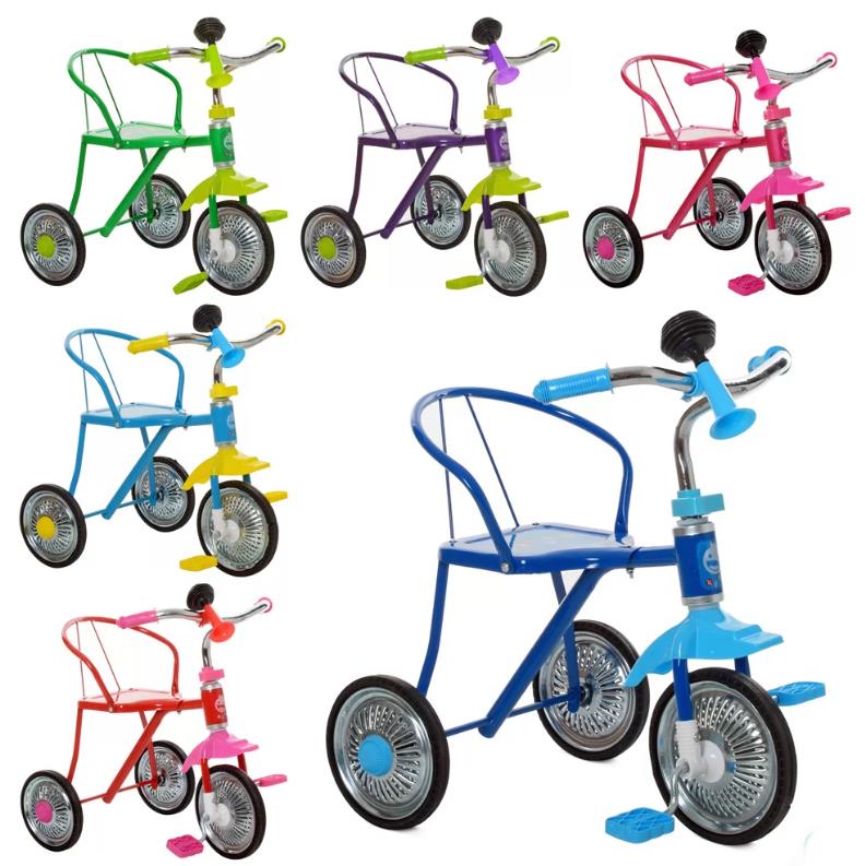 Велосипеди для дітей із трьома колесами. Найрізноманітніші стилі оформлення та аксесуари (кошики, багажника, пензлики на кермі, музичні панелі). Великий асортимент кольорів велосипедів .