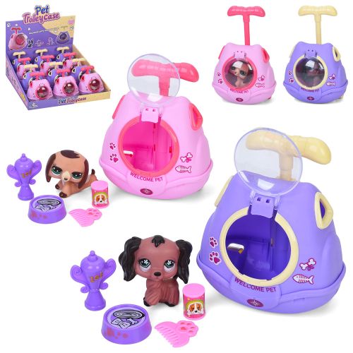 Собака, 3 види собак 6см, аксесуари (сюрприз), 2 кольори переносок 13-12-8см, 12шт(3види) в дисплеї, 39-35-13см