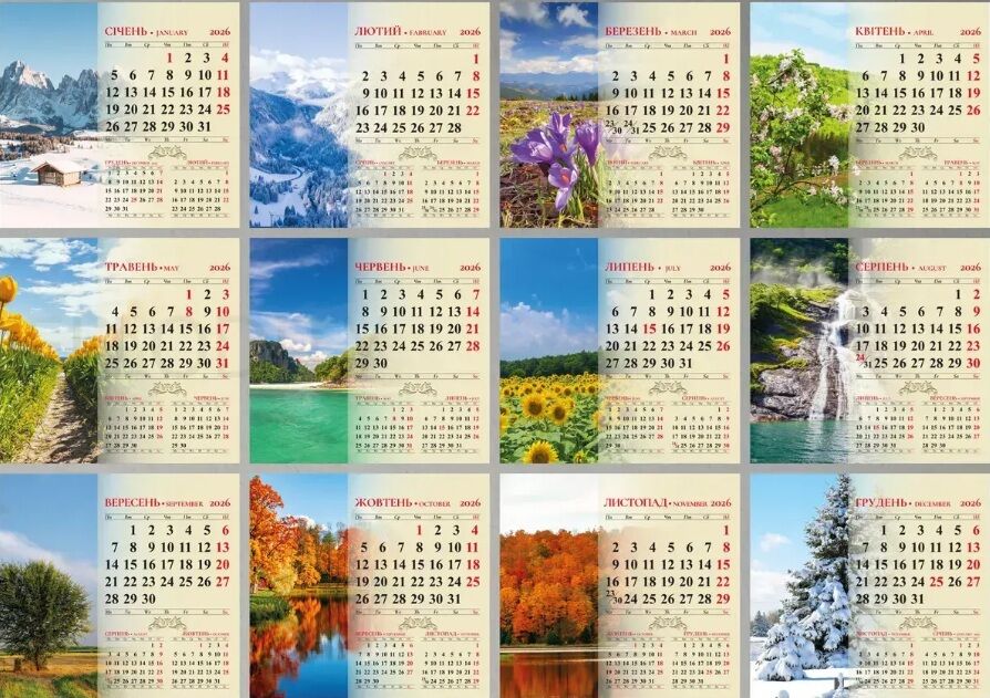Календар 2026 настільний трикутний на спіралі в асортименті