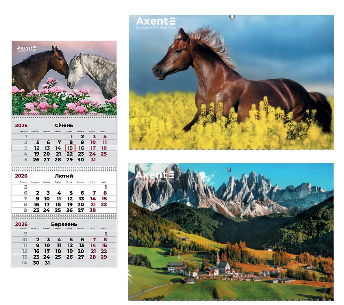 Календар 2026 настінний перекидний КВАРТАЛЬНИЙ 3 пружини 8803-26-A Axent