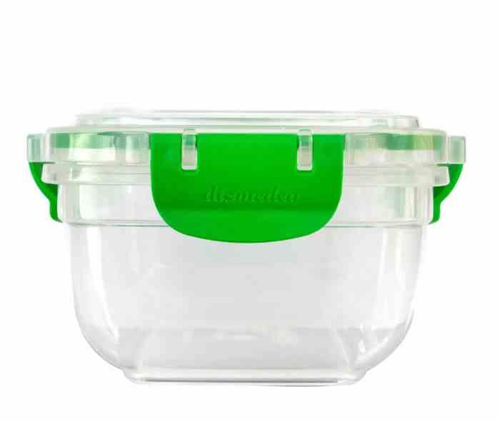Герметичний харчовий контейнер призначений для зберігання та транспортування продуктів чи готових страв. Кришка щільно прилягає до основи за допомогою ручок – фіксаторів і завдяки ущільнювальній гумці на кришці запобігає проливці. У цьому контейнері можна розігрівати їжу в мікрохвильовій печі і зберігати її в морозильній камері. Також можна мити в посудомийній машині.