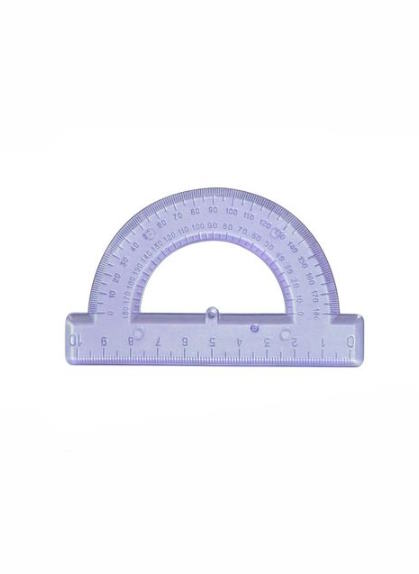 транспортир пластиковий прозорий 6 кольорів в асортименті