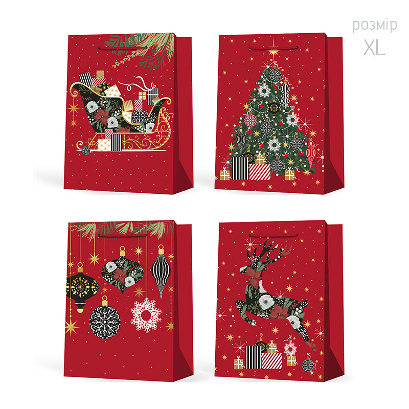 подарунковий пакет паперовий 31 х 42 х 12 см Новорічний в асортименті 5381 97-55