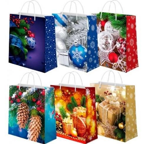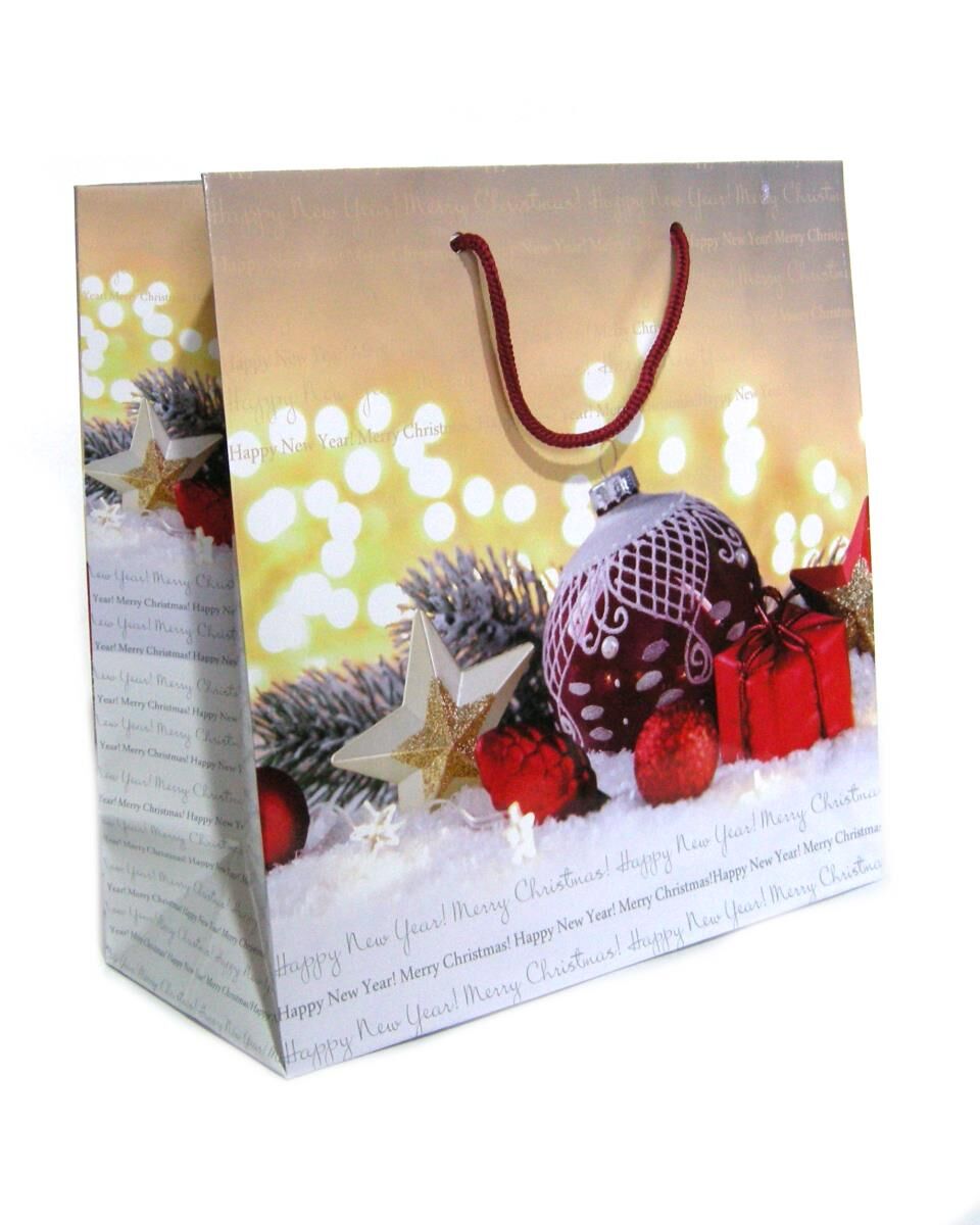 подарунковий пакет новорічний середній квадратний 24 х 24 х 10 см