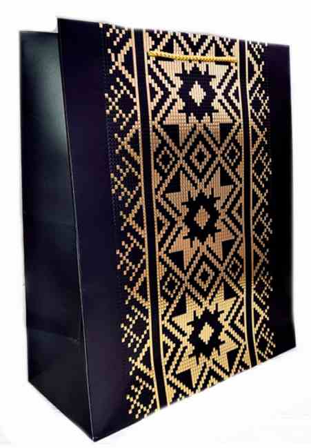 кульок подарунковий паперовий 23х18х10 Золотий орнамент