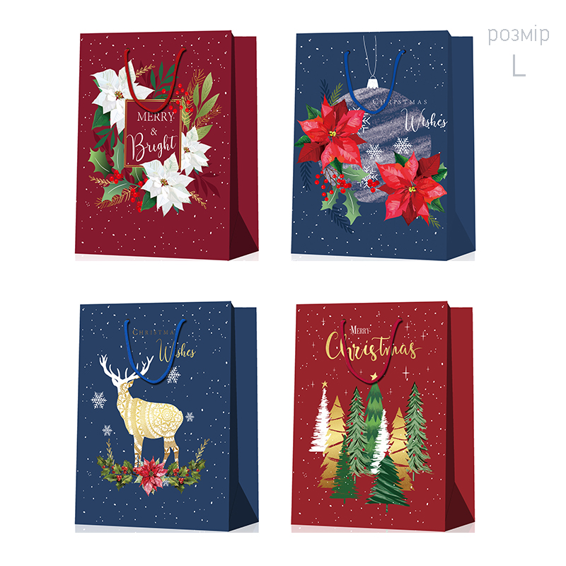 подарунковий пакет 26 х 32 х 12 см Новорічний в асортименті 5283 97-36