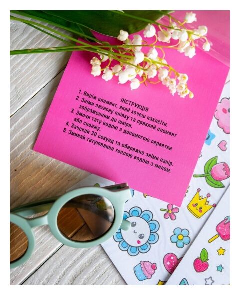 - Татушку легко нанести — достатньо води та кілька секунд часу. Тримаються довго, але так само просто змиваються теплою водою з милом. Безпечні для ніжної дитячої шкіри.
