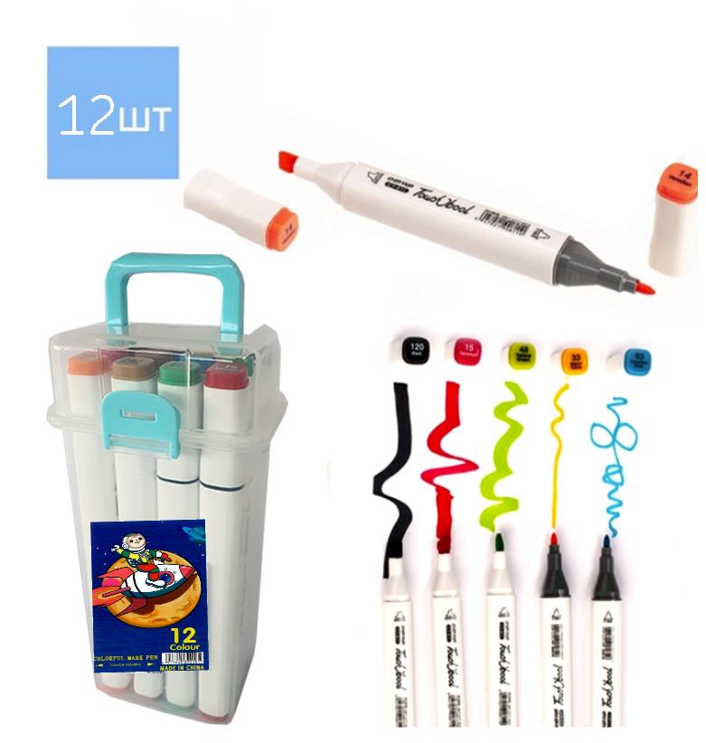 набір скетч маркерів 12 кольорів двосторонні білий корпус CY811-12
