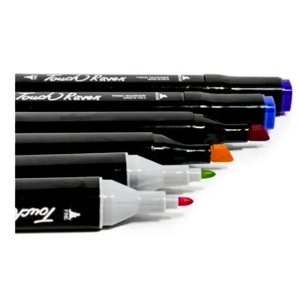 Спиртові маркери Touch для тих, хто захоплений малюванням і каліграфією, любить створювати комікси та мальовничі ескізи. У наборі 168 маркерів різних кольорів. Корпус пластиковий, гладкий. Ковпачки щільно закриваються. Для зручності розпізнавання типу пера кінці маркерів пофарбовані різним кольором.