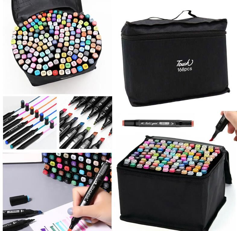 набір скетч маркерів 168 кольорів touch двосторонні чорний в сумочці купити