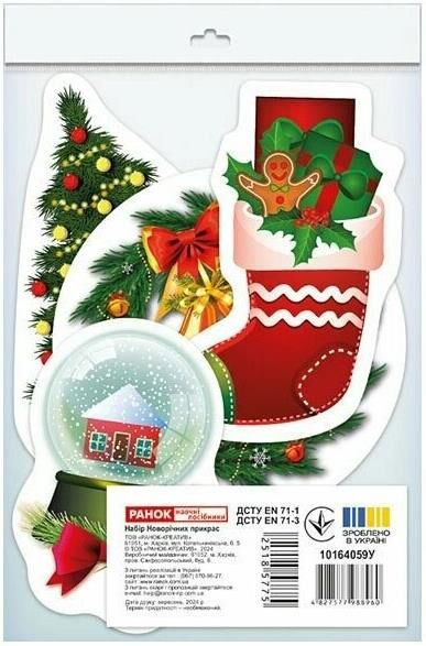 4 окремих елемента декору створюють святкову атмосферу своєю яскравістю і сяючим блиском глітера: