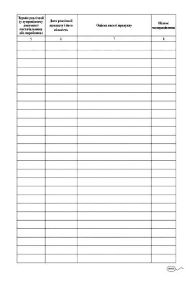 Журнал обліку бракеражу сирої продукції