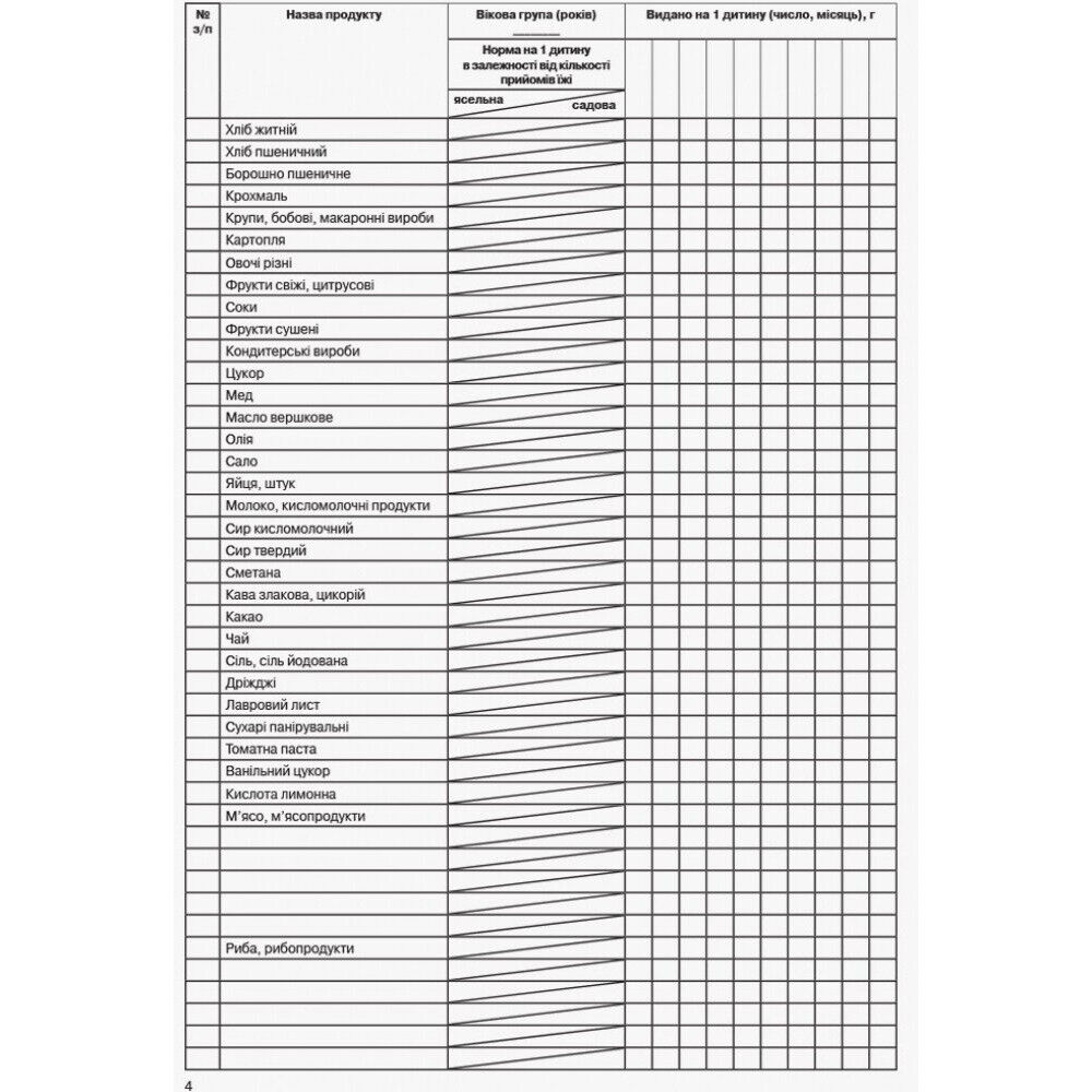 Документація для дошкільних навчальних закладів. Журнал обліу виконання норм харчування.