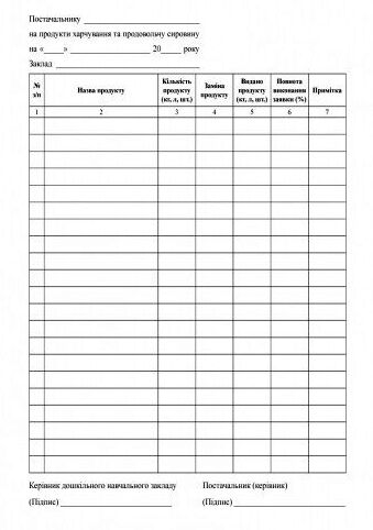 Журнал заявок на продукти харчування