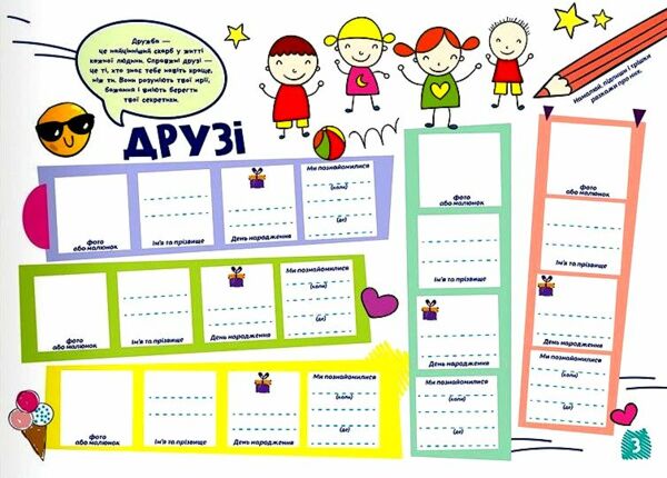 - Креативність та самовираження – завдяки можливості вільного заповнення, діти можуть виражати свої думки та почуття у творчій формі.