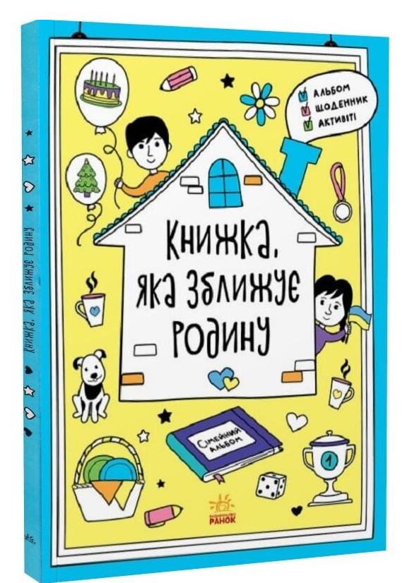 «Книжка, яка зближує родину» створена для занотовування родинних спогадів, традицій і планів на майбутнє. Тут є безліч місць для фото й малюнків, генеалогічне дерево, поради для спільного відпочинку й творчості… Заповнюючи барвисті сторінки з цікавими анкетами про себе й близьких, школярі й школярки зрозуміють унікальність своєї сім’ї. А настільна гра всередині підніме командний дух!