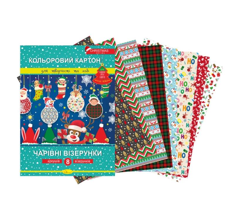 Кольоровий картон Чарівні візерунки 8 арк.новорічна серія "Апельсин"