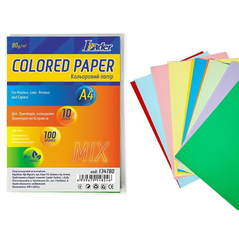 папір офісний кольоровий а4 80г/м2 100 аркушів 10 кольорів 10 аркушів насичений мікс