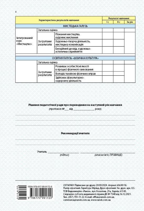 Свідоцтво призначене для відображення рівня семестрових та річних навчальних досягнень здобувача/здобувачки середньої освіти.