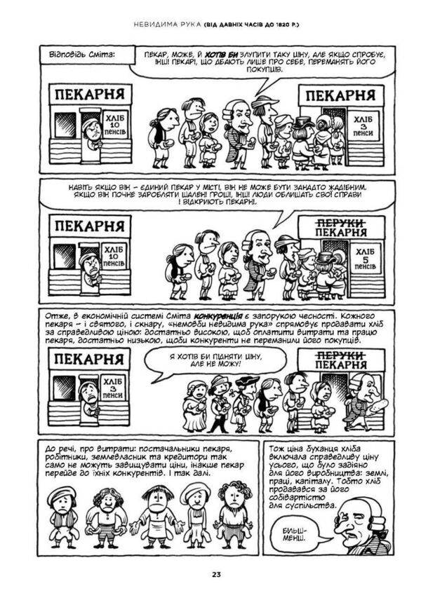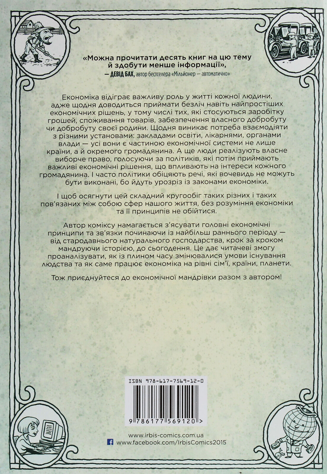 Автор коміксу намагається з’ясувати головні економічні принципи та зв’язки починаючи із найбільш раннього періоду — від стародавнього натурального господарства, крок за кроком мандруючи історією, до сьогодення. Це дає читачеві змогу проаналізувати, як із плином часу змінювалися умови існування людства та як саме працює економіка на рівні сім’ї, країни, планети.