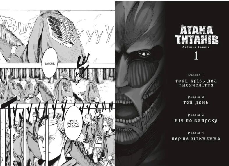 «Атака титанів» — темна фентезі-манґа, створена Хаджіме Ісаямою. Сюжет розгортається в постапокаліптичному світі, де залишки людства ховаються за трьома величезними стінами, щоб захиститися від жахливих істот. Герої вступають до військового корпусу, щоб боротися з титанами, розкривають приголомшливі таємниці їхнього походження та дізнаються про природу світу, в якому вони живуть.