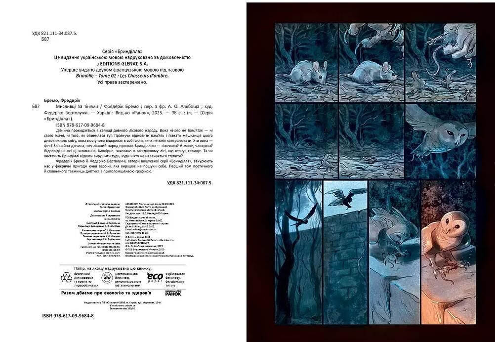 Фредерік Бремо й Федеріко Бертолуччі, автори вишуканої серії «Бринділла», занурюють нас у феєричні пригоди юної героїні, яка вирушає на пошуки себе. Перший том поетичного й сповненого таємниць диптиха з приголомшливою графікою.