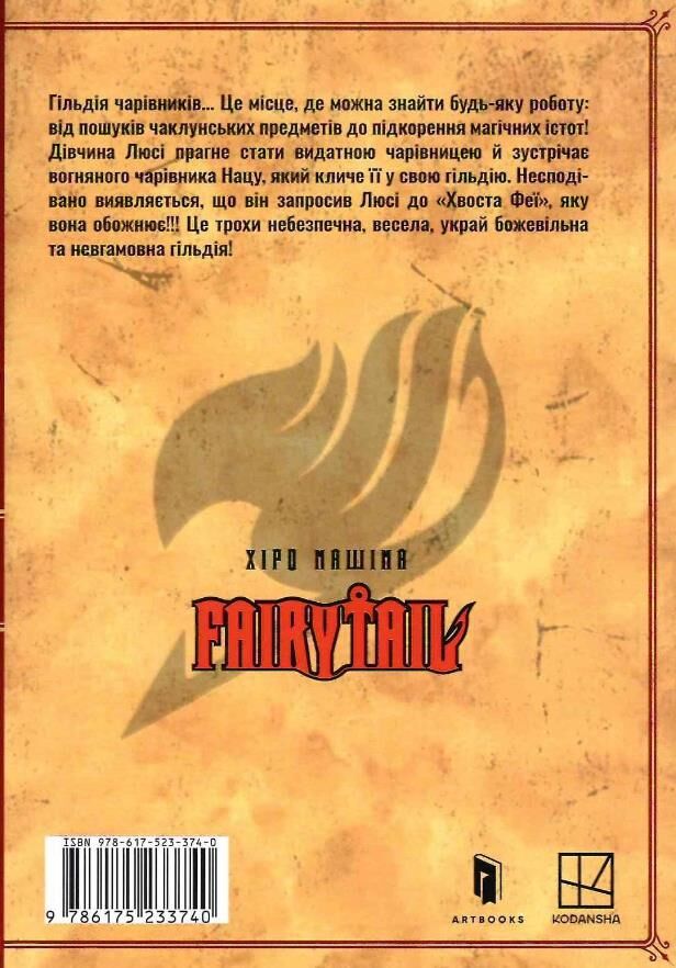 Ласкаво просимо до гільдії «Хвоста Феї»! На вас чекають чарівники, герої та веселі пригоди. Гільдія чарівників... Це місце, де можна знайти будь-яку роботу: від пошуків чаклунських предметів до підкорення магічних істот! Дівчина Люсі прагне стати видатною чарівницею та хоче вступити до «Хвоста Феї» — саме у цій гільдії зібралися наймогутніші чарівники. Але натомість доля приводить її просто до лап банди сумнівних піратів на чолі з підступним чарівником. Її єдина надія — Нацу, дивний хлопець, якого вона випадково зустрічає під час своїх подорожей. Нацу не типовий герой — його захитує у дорозі, він їсть, як свиня, а його найкращий друг — балакучий кіт. З такими друзями, чи не краще Люсі з ворогами?.. Утім насправді Нацу є могутнім вогняним чарівником. Він кличе Люсі у свою гільдію. Несподівано виявляється, що він запросив дівчину до «Хвоста Феї», яку вона обожнює!!! Це трохи небезпечна, весела, украй божевільна та невгамовна гільдія!