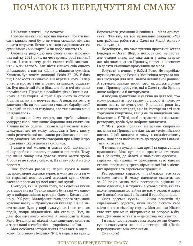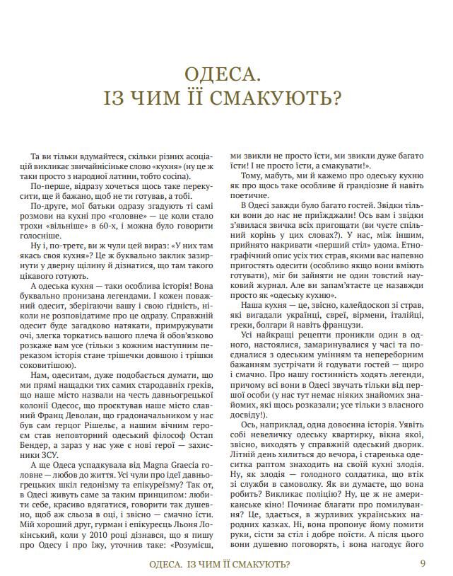 «Моя одеська кухня» — це кулінарний підручник і запрошення до великого столу. Книга, яка заохочує готувати, збирати близьких і закохуватися в Одесу, навіть якщо ви далеко від неї.