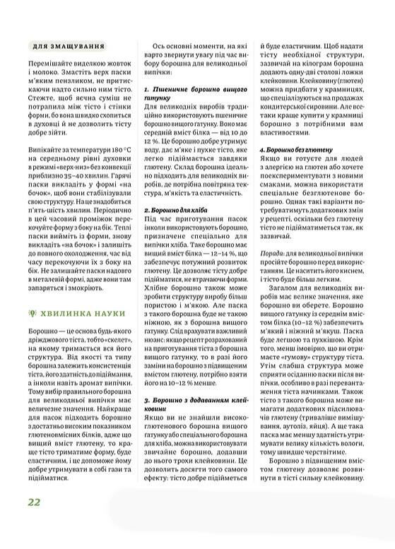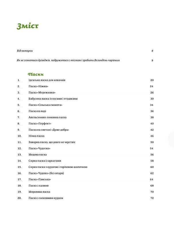 У новій книжці кулінарки Лесі Кравецької зібрані найкращі рецепти пасок до Великодня: заварні та медові, сирні й солені, з яблуками, цукатами та навіть морквяні. Крім детальних рецептів, ви знайдете тут пояснення, яким має бути борошно, навіщо кип’ятити й охолоджувати молоко для тіста, чи обов’язково потрібна опара та які дріжджі брати. Авторка не лише описує процес приготування, а й докладно розповідає, з яких пасок краще починати, якщо ти новачок у кулінарії, чому випічка осідає під час випікання, а також як приготувати глазур і декор. І найголовніше — у своїй книжці пані Леся говорить про те, як пекти з любов’ю та пошаною до традицій.